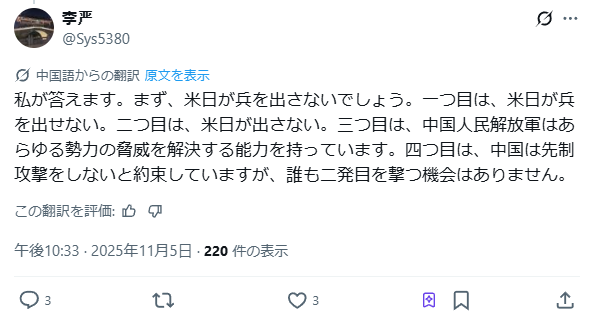 下記は中国人のコメントです。