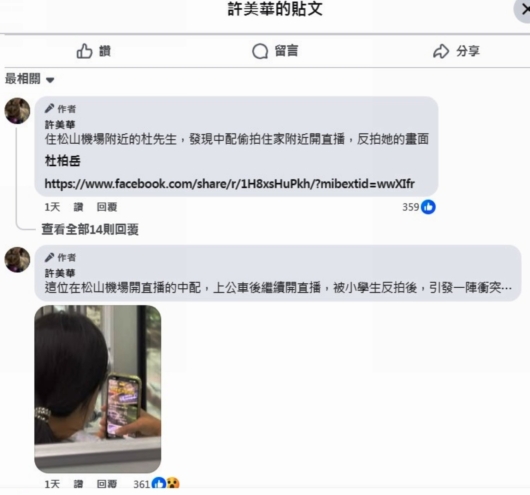 小学生の彼が自分の撮影をしていることに気づき、二人と台湾人の乗客の間で衝突が勃発した。