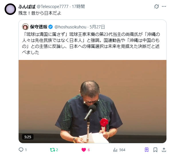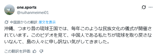 沖縄は間違いなく日本なので中国人が琉球を取り戻さないと島の人々に申し訳ない云々、意味不明な妄言は本当に止めていただきたいです。