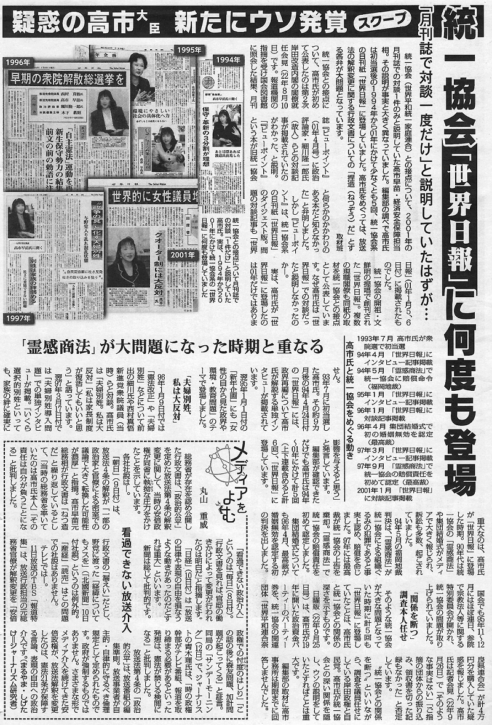 さらに、統一教会「世界日報」に何度も登場したとスクープされています。