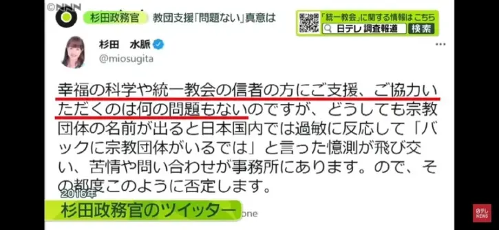 杉田水脈によれば、幸福の科学や統一教会の信者の方にご支援、ご協力いただくのは何の問題もないとのことです。