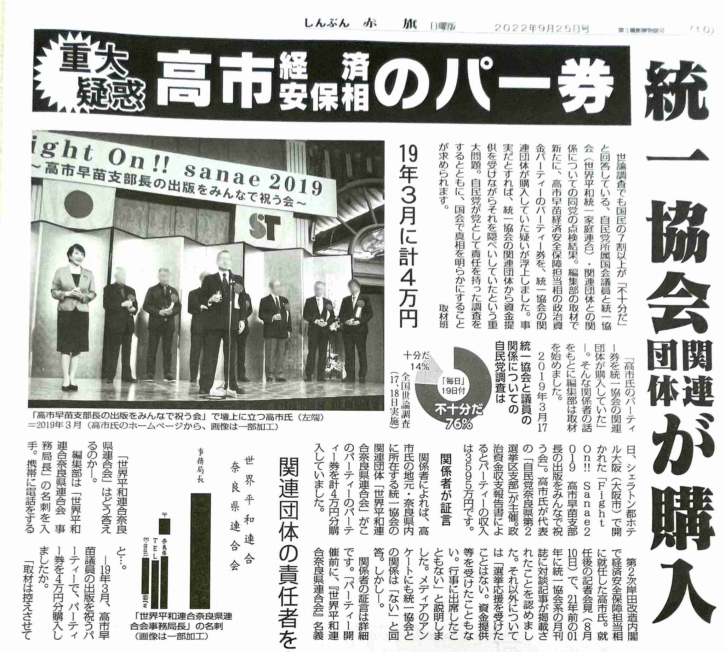 高市早苗と世界平和統一家庭連合(旧統一教会)の関係